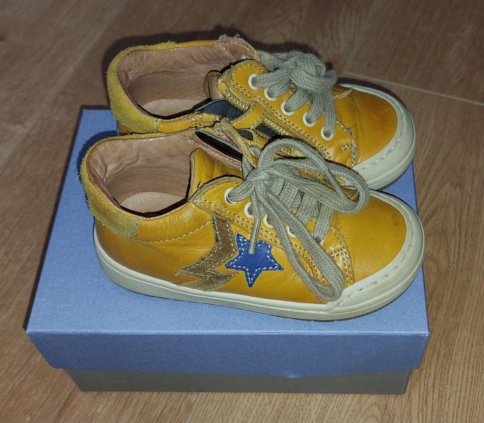 Je vends cette paire de chaussures cuir à lacets et fermetures éclairs pour garçon, de couleur jaune moutarde. Un modèle tendance et coloré, parfait pour les petits aventuriers. - Type de produit : Chaussures à lacets et fermetures éclairs - Pointure : 22 - Couleur : Jaune / Moutarde - Accessoires inclus : Boîte d'origine Prix neuf 90 euros N'hésitez pas à me contacter si vous avez des questions !