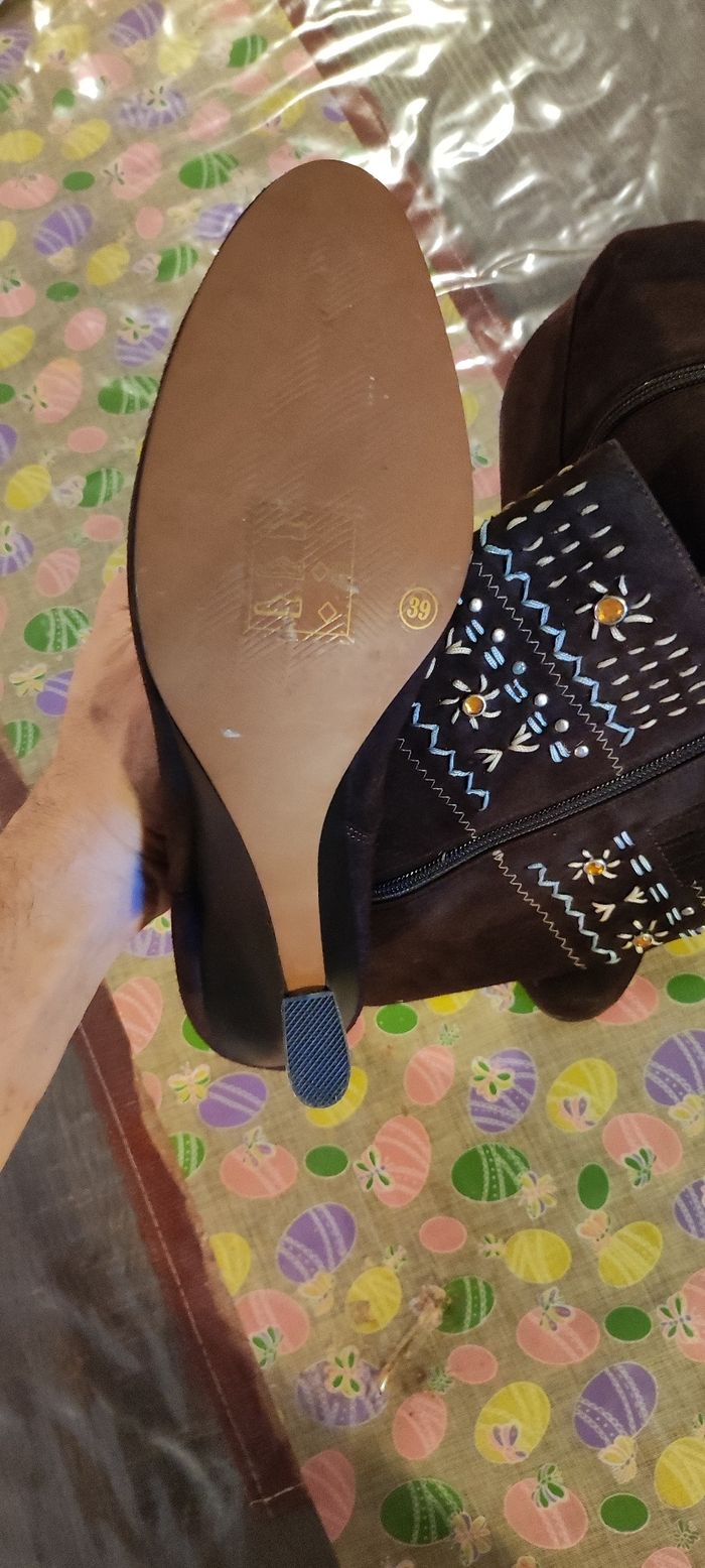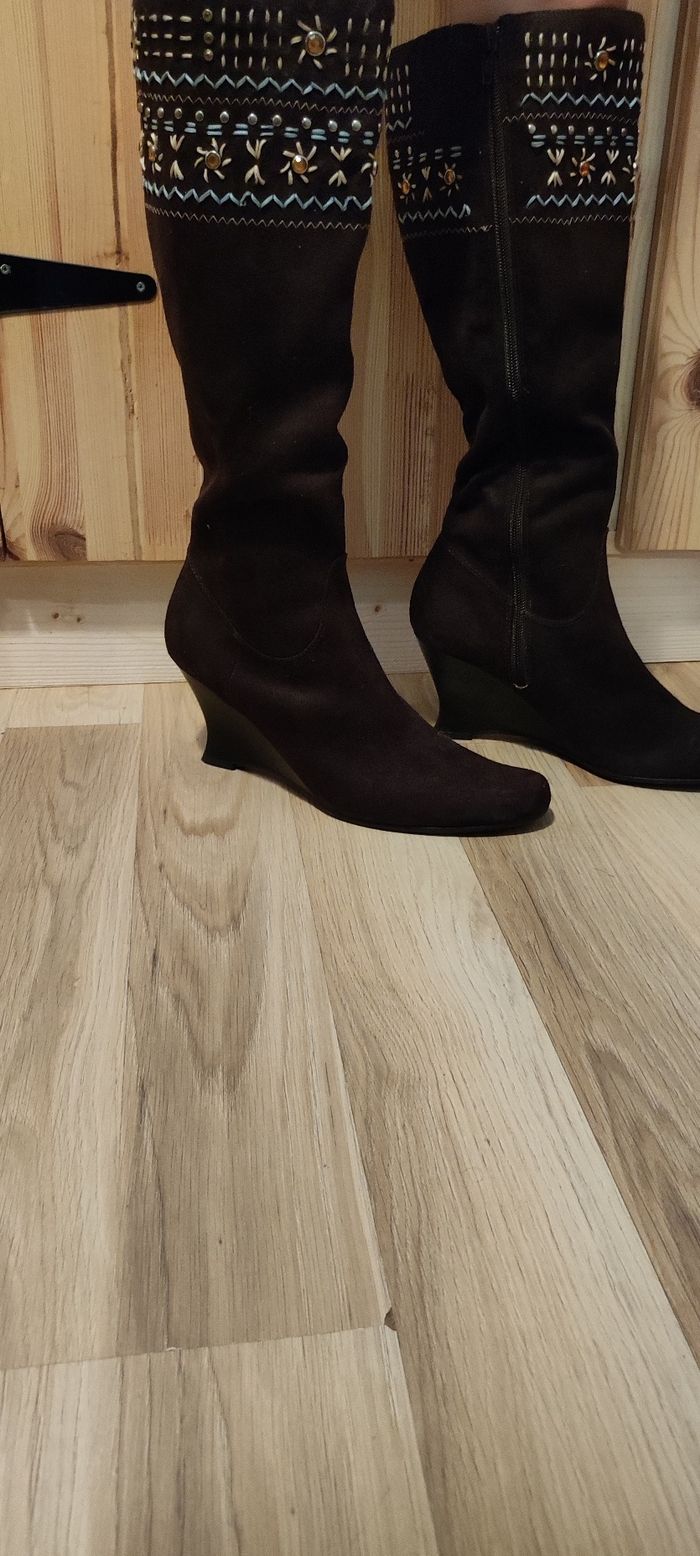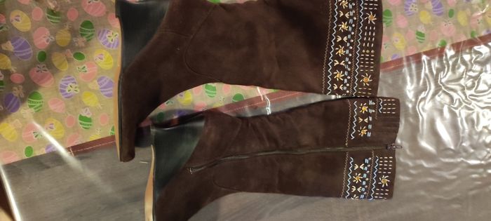 Bonjour. Voici une paire de bottes en daim t.39 en très bon état de hauteur 43cm N'hésitez pas à me contacter pour plus de renseignements ou pour plus de photos. A bientôt