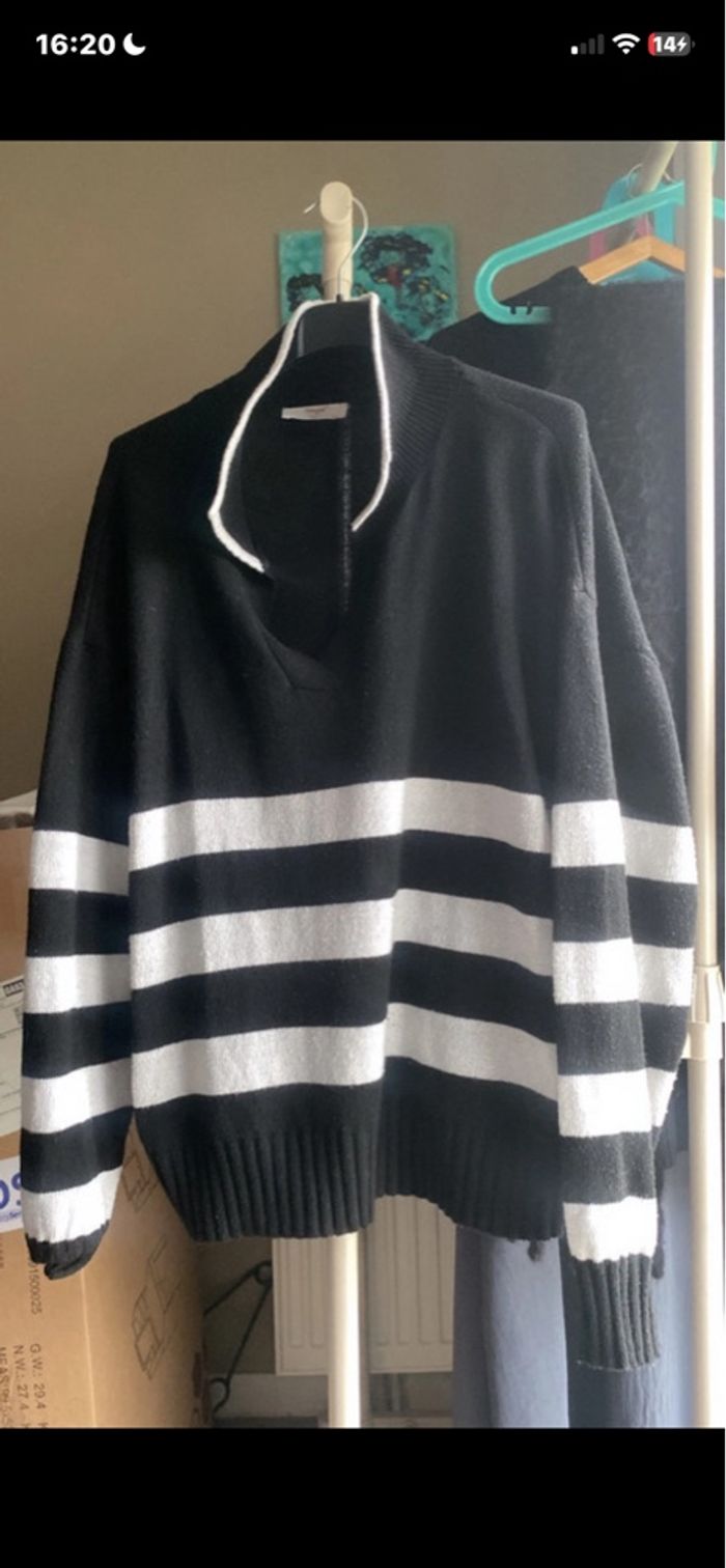 Pull à rayure blanche et noir  - photo numéro 1