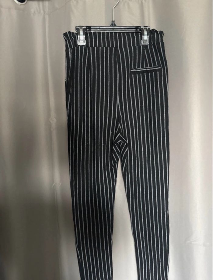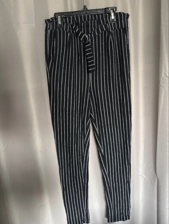 Pantalon à ligne noir et blanc avec ceinture  - photo numéro 1