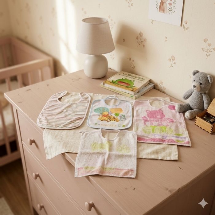 🎀 bavoir + 2 bandeaux cheveux assortis idée cadeau naissance