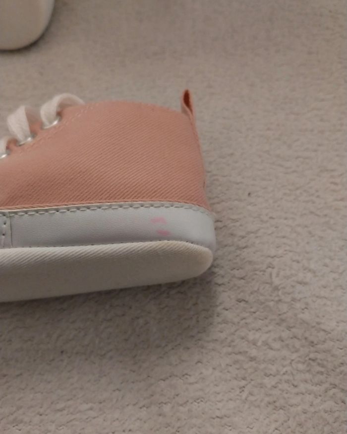 Chaussure de taille 6 mois Attention petite tache rose au niveau du blanc de la semelle voir la photo