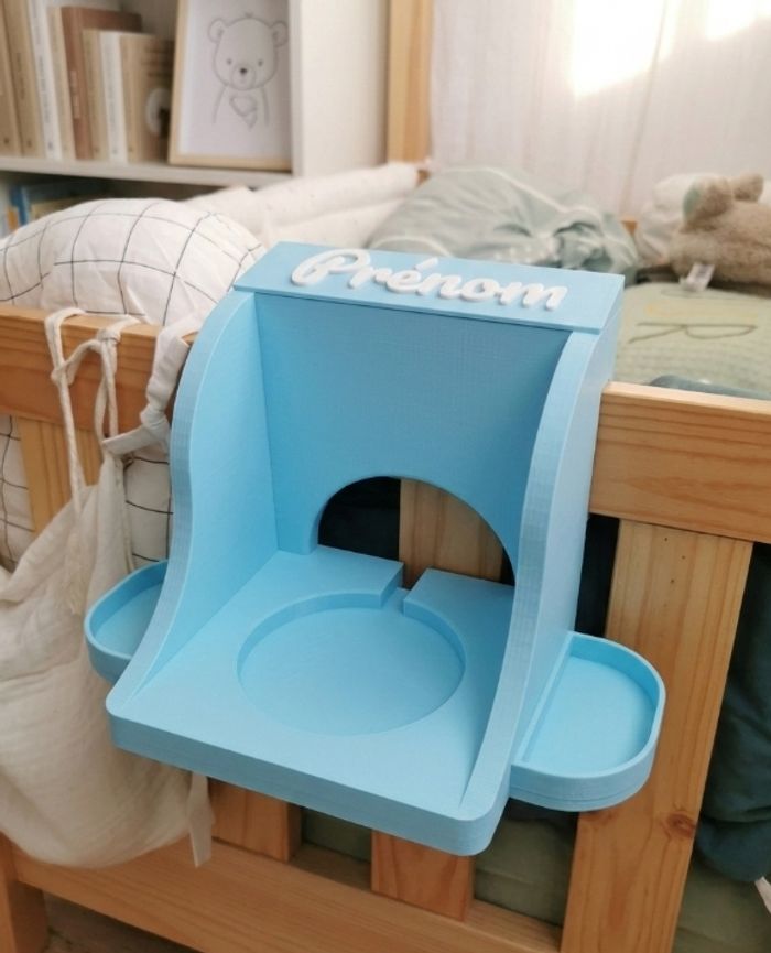 Support de lit pour Toniebox avec rangements pour figurines Tonies. Pratique pour garder la Toniebox et les personnages à portée de main, sans encombrer la table de nuit. ✔️ Personnalisation : couleur et prénom à choisir ✔️ Compatible Toniebox 1 & 2 ✔️ Rangement pour figurines ✔️ Largeur max de la barre de lit : 2 cm
