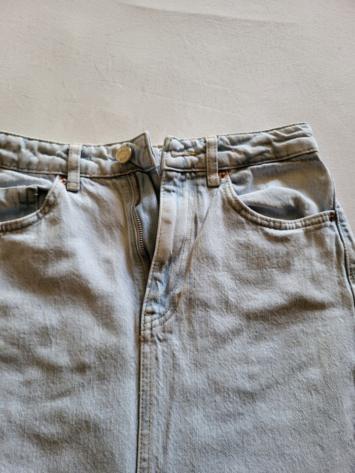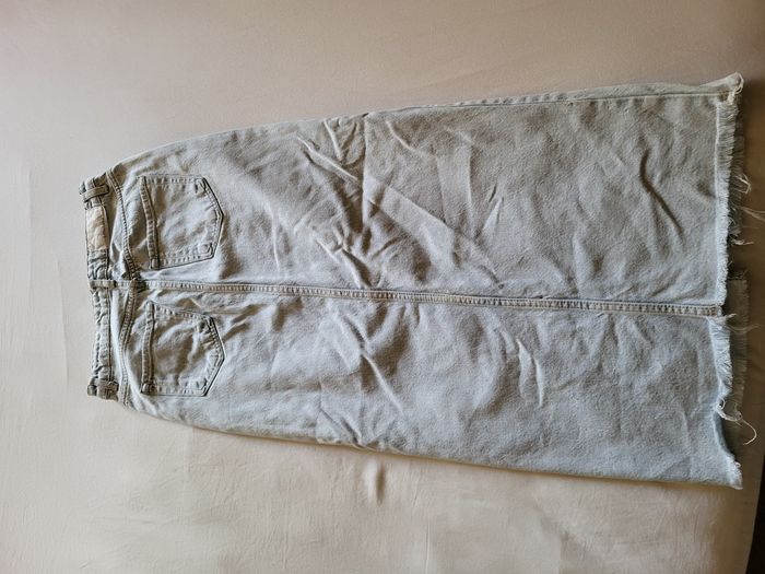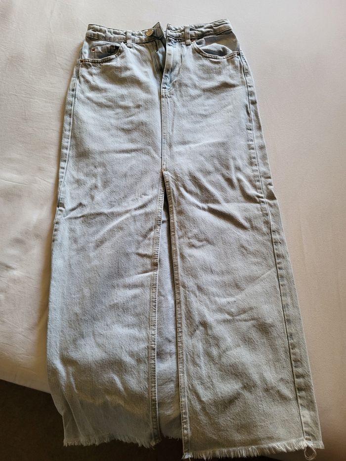 Jupe longue en jean Bleu délavé Fente sur devant Taille basse Poches devant et arrière