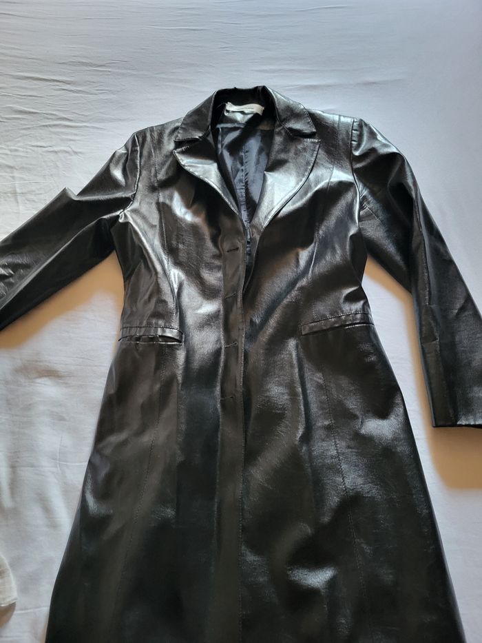 Manteau femme imitation cuir Fente arrière Col tailleur