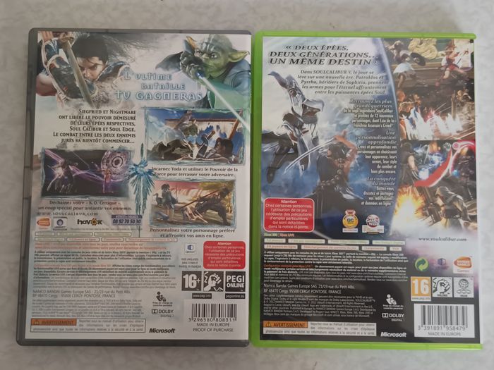 Lot de 2 Jeux Soul Calibur Xbox 360 en très bon état général avec notice : Soul Calibur IV Soul Calibur V