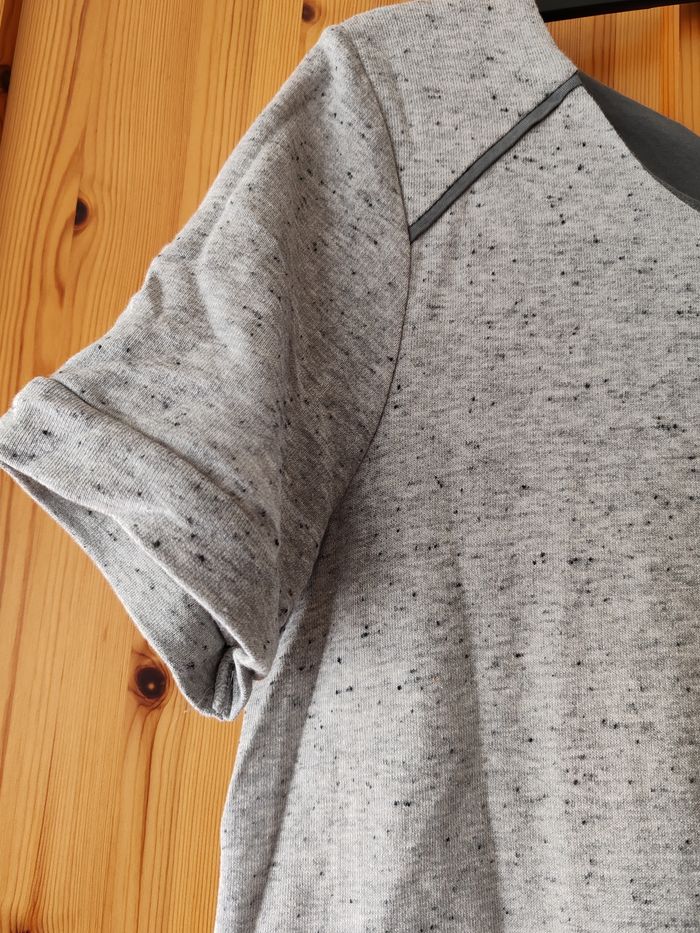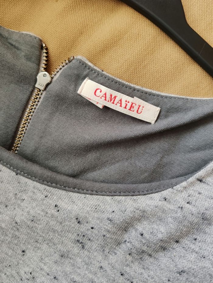 robe casual de la marque Camaïeu en gris anthracite. - Caractéristiques : Manches courtes, Col rond, Volant à la base, Fermeture éclair au dos.