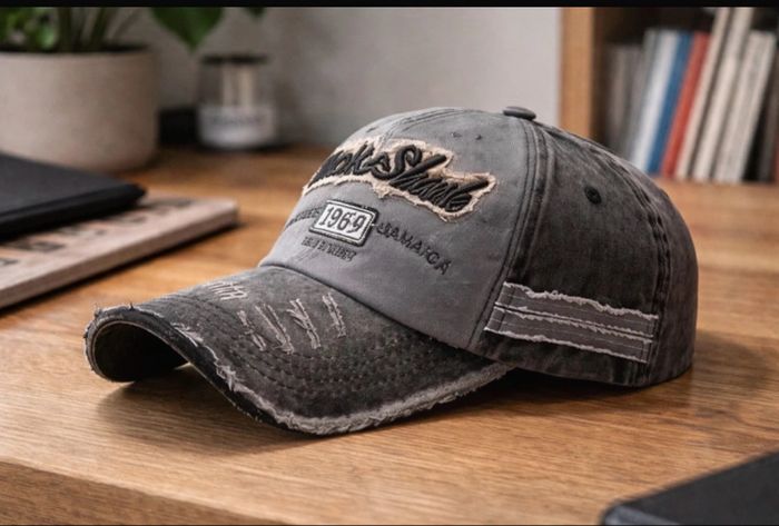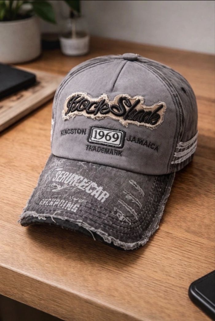 Casquette grise Y2K vintage - style streetwar /UK - effet usé tendance