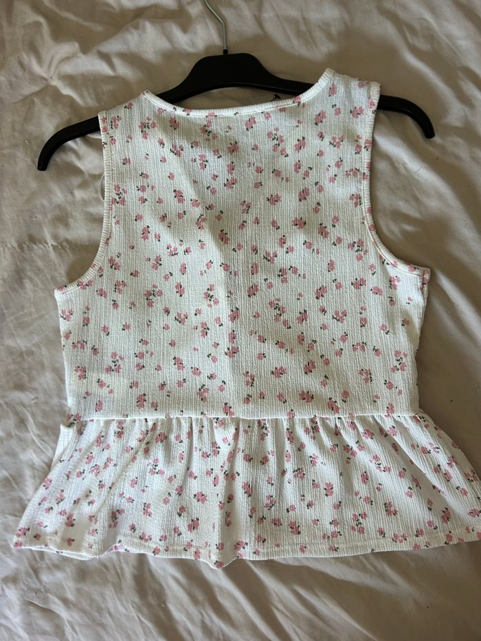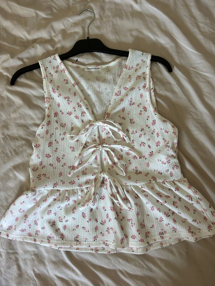 Petit haut bordeaux avec des fleurs ajourés et pompons