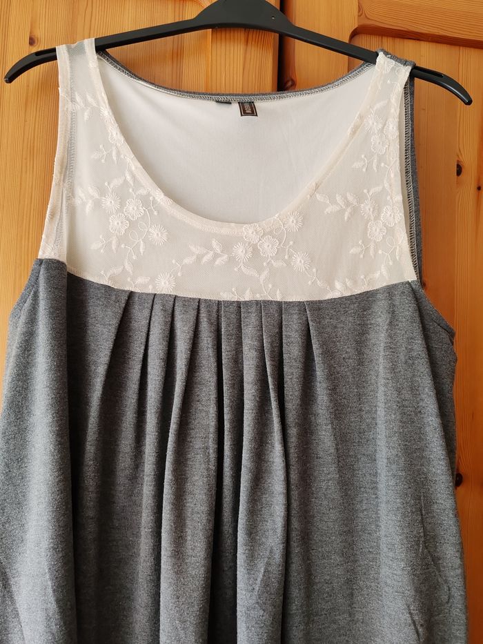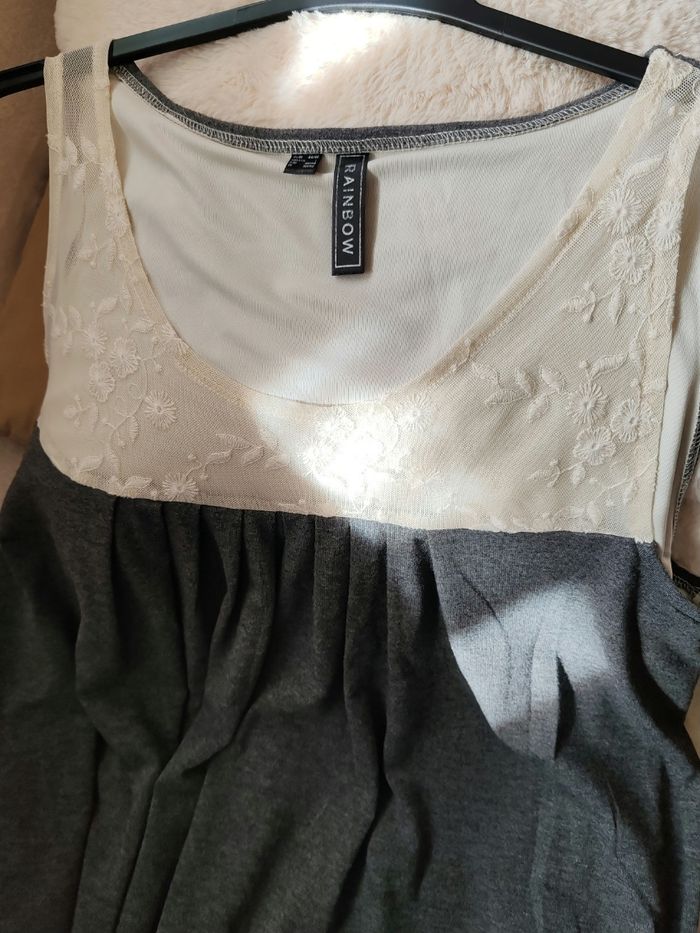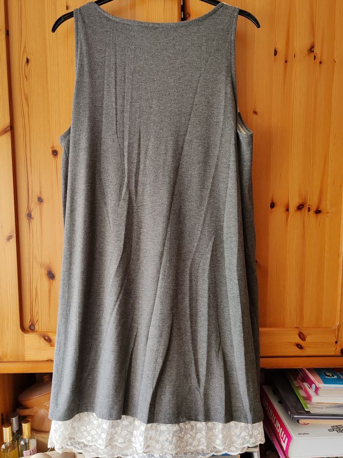 robe casual gris anthracite, mélange de styles avec ses détails en dentelle creme. - Caractéristiques : Sans manches, Col rond, Dentelle crème au col et à l'ourlet, Coupe ample.marque Rainbow