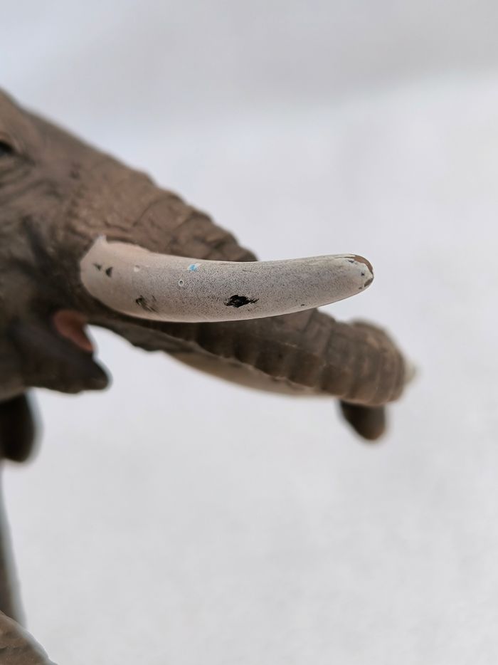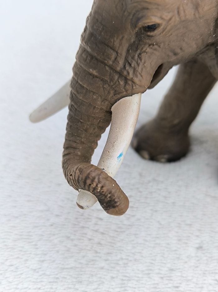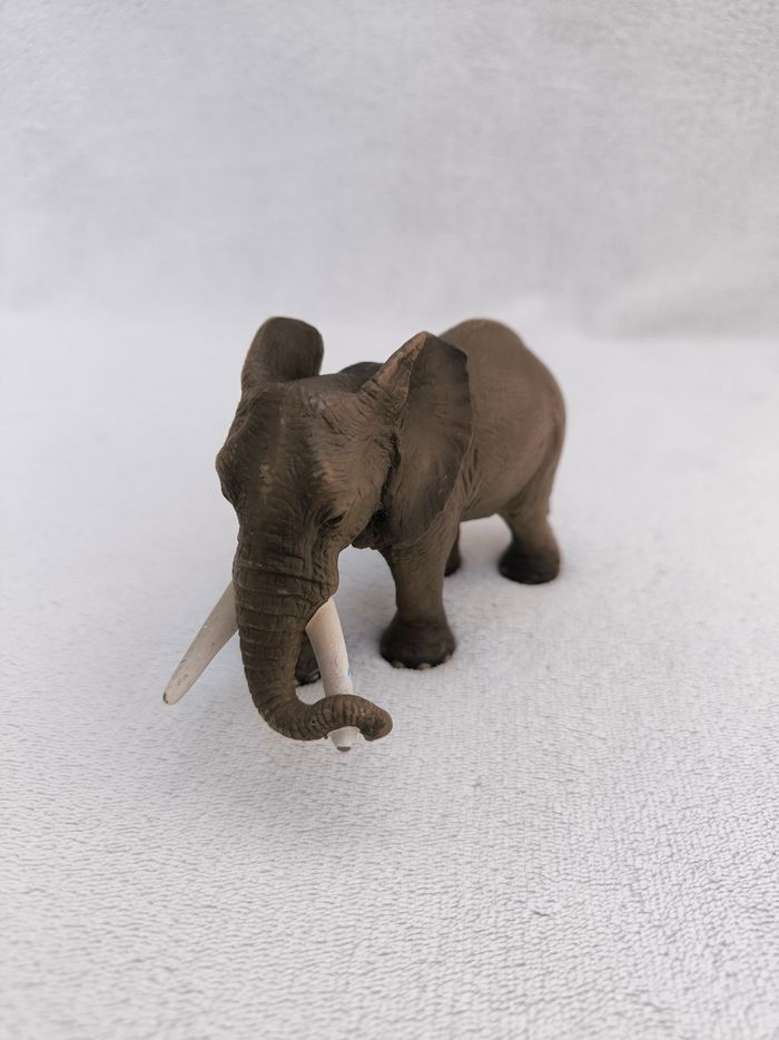 Grand éléphant d'Afrique femelle 14342 Marque Schleich Année 2004 • Coloris marron kaki • Défenses légèrement abîmées, petites marques En très bon état #evelyne_jeux