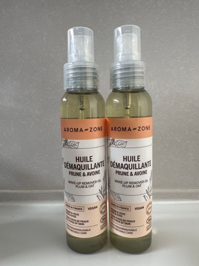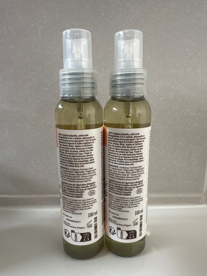 Lot de 2 huiles démaquillantes AromaZone, les 2 sont neuves et jamais utilisées. Prix d’origine d’une huile : 7€95