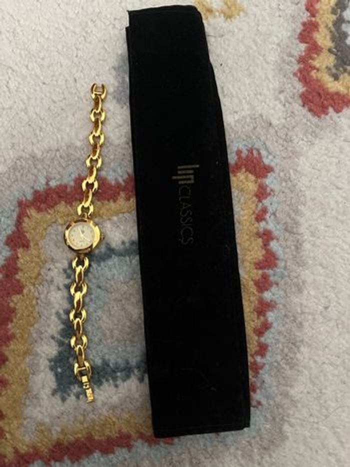 Montre femme LIP Classics quartz bracelet chaîne doré, fonctionne, très bon état. (pile non fournie) pochette de la montre fournie avec 20cm en longueur totale