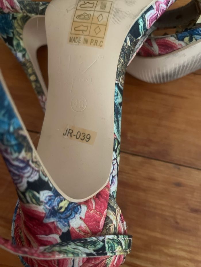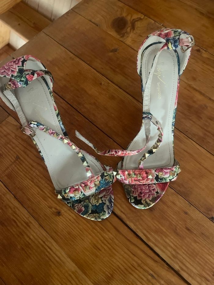 Jolis pieds nus à talons fleuris Peu portés