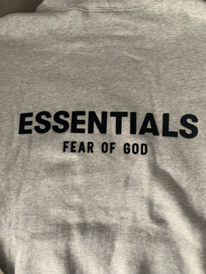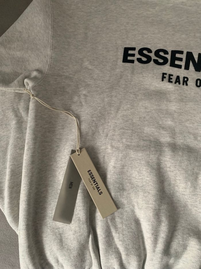 Je vends ce sweat à capuche gris de la marque Essentials en excellent état ( aucun accro ) Taille M MAIS ⚠️ Essentials taille grand donc plutôt L voir XL Je le vends car erreur de taille Envoi rapide et soigné