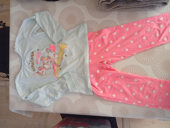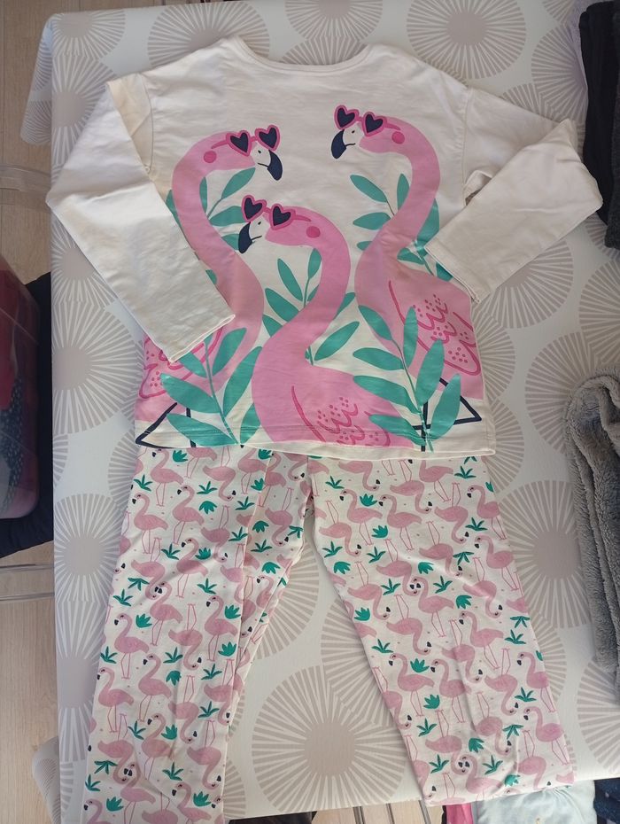Je vends ce lot de 15 vêtements d'hiver pour fille, taille 8 ans. Une belle sélection de pièces variées pour compléter la garde-robe hivernale de votre enfant. - Type de produit : Lot de vêtements d'hiver - Univers : Enfant fille - Taille : 8 ans / 128 cm - Composition du lot : 1 blouson Kiabi 2 gilets (1 Ton Tin, 1 Okaïdi) 1 boléro Shiny 2 pulls Kiabi 2 t-shirts manches longues (1 Kiabi, 1 sans marque) 1 pantalon Tissaia 3 robes (2 Benetton, 1 Kiabi) 3 pyjamas (1 Tissaia, 1 In Extenso, 1 DPAM) - Couleurs : Rose, bleu marine, blanc, noir, gris - Caractéristiques : Motifs variés (flamants, pois, carreaux, uni) Très bon état à bon état N'hésitez pas à me contacter pour plus d'informations ou de photos détaillées de chaque pièce.
