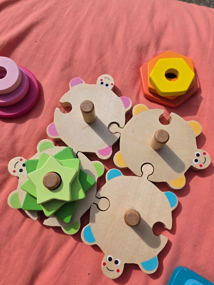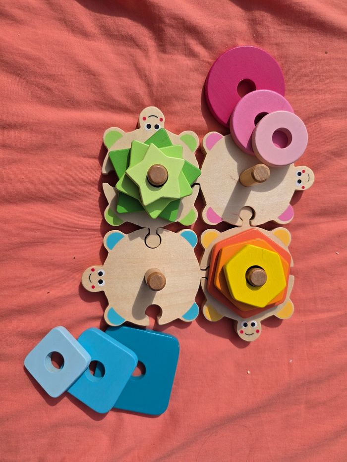Les empilables Tortues 'I wood' est un petit jeu d'éveil qui fourmille d'ingéniosité ! D'abord, bébé pourra s'amuser à encastrer les tortues rigolotes les unes avec les autres. Ensuite, il pourra faire travailler sa dexterité en empilant les 12 pièces les unes sur les autres. Enfin, il découvrira les formes, les couleurs et fera travailler sa logique en associant les bonnes pièces ! Ce jouet est peint avec de la peinture à l'eau. Matériau(x) utilisé(s) : base en contreplaqué et pièces en hêtre