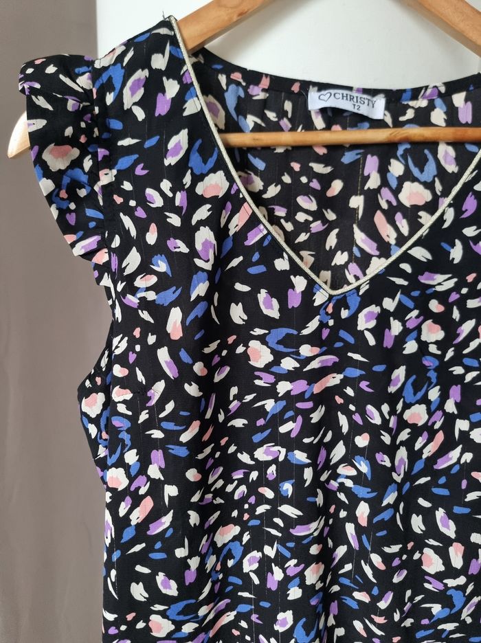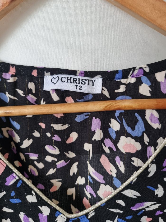 Blouse colorée Christy Taille 2 grande taille = 44 Largeur aisselle à aisselle = 57 cm Longueur : 65 cm Très bon état