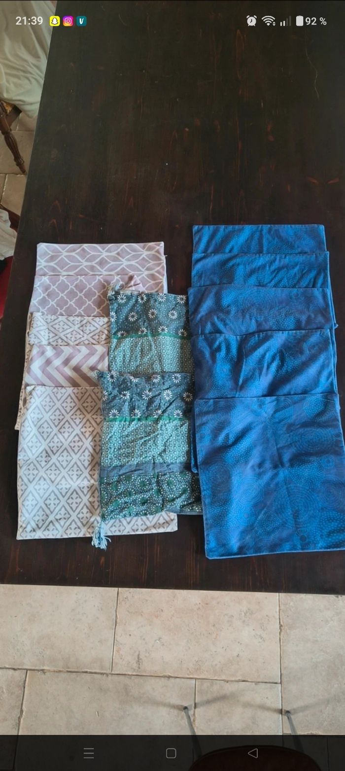 Lot de 12 housses / taies de coussin assorties 40x40 cm et 40x33 cm bleu blanc mauve