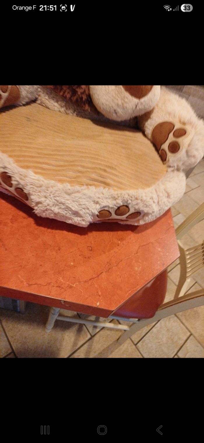 Joli fauteuil avec tête de lion pour les plus petits. Malheureusement taches sur le dessus de l assise et en dessous. ( voir photo)
