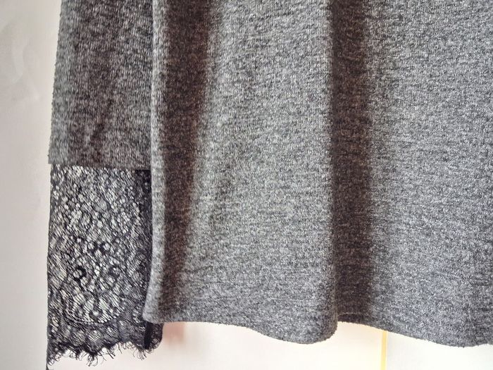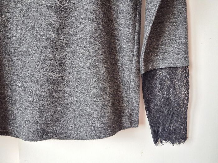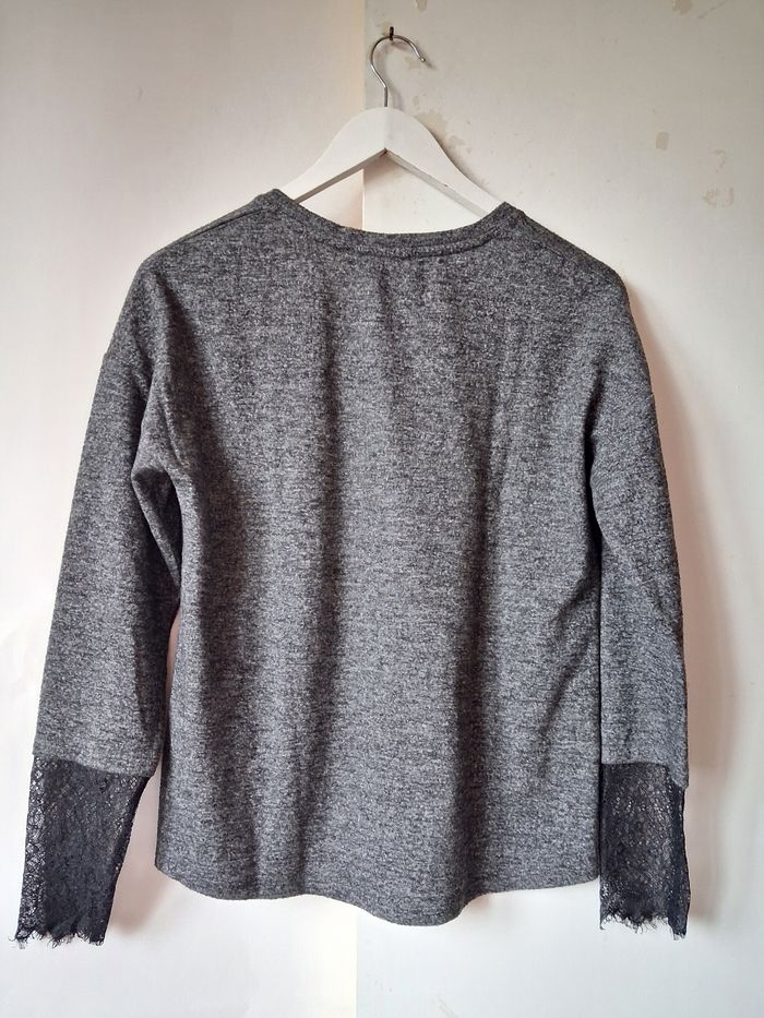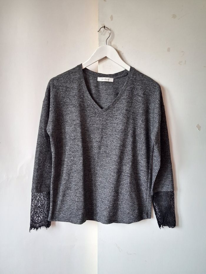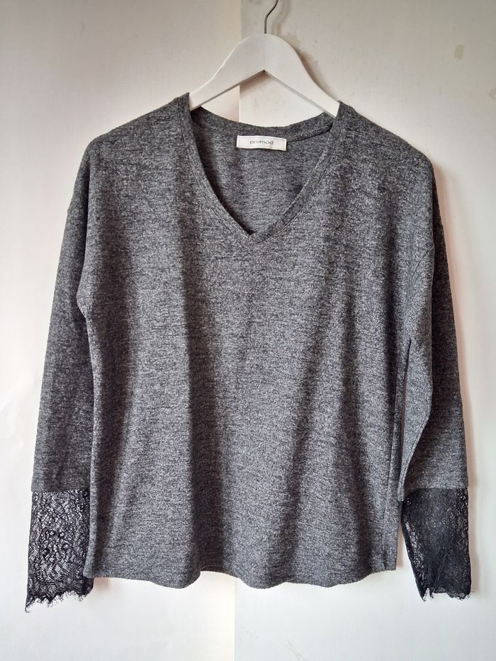 Sweat Promod Sweat Pull Col V Gris chiné Dentelle noire aux poignets Taille M 38 Très bon état