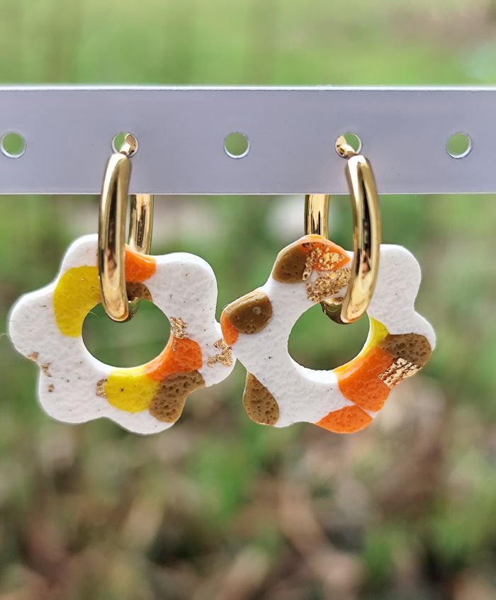 Créoles inoxydable pampilles en pâte polymère fait main et neuf