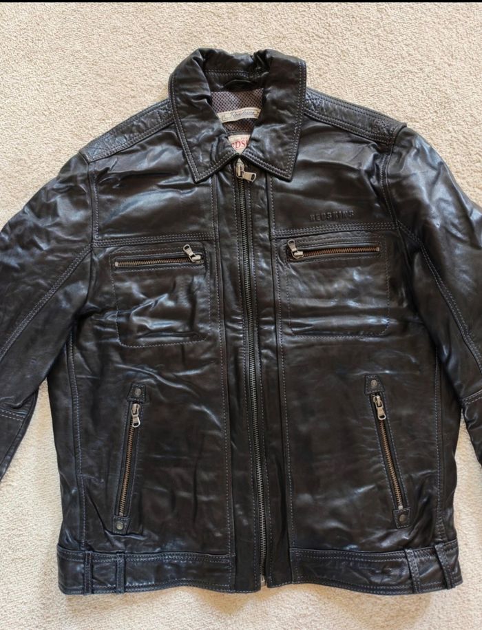Veste cuir véritable Noire Redskins Parfait état Étiquettes présentes