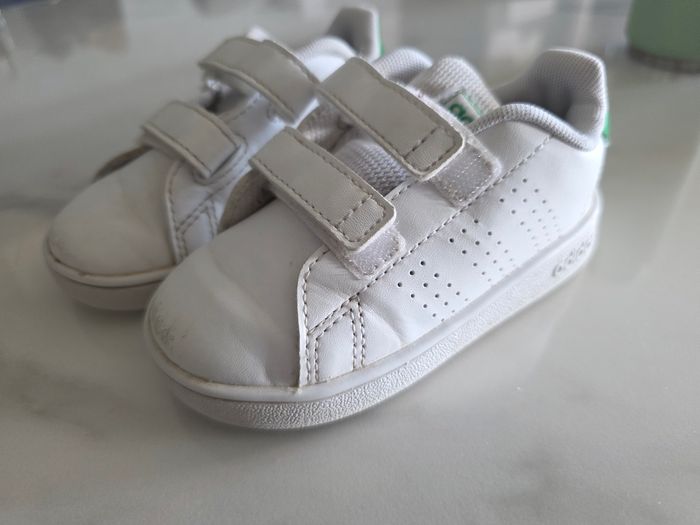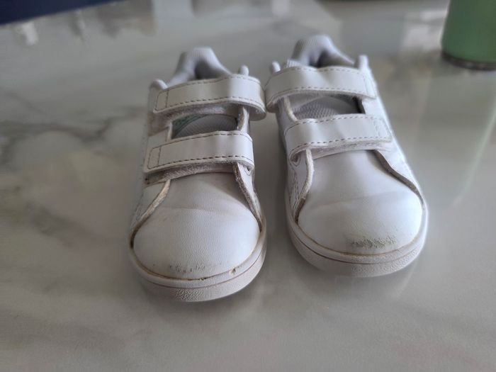 Chaussure Adidas taille 22, idéale pour un enfant qui commence la marche en extérieur ou un enfant qui joue dehors. ✨️ Abimer sur le devant mais très bon état le reste 📦 Envoie rapide 🚭 Maison non fumeur et sans animaux