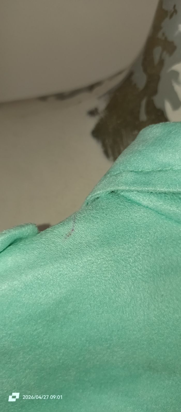 Bonjour Je vend cette veste effet daim couleur menthe ou turquoise Portée quelques fois Une trace sur l épaule Étiquette de composition coupée. Merci
