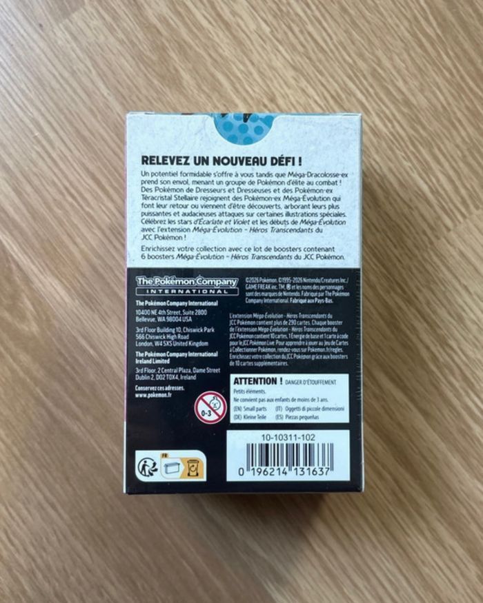Bundle Pokémon ME2.5 Héros Transcendants, 100 % neuf et scellé d'usine (version française) 📌 À savoir : * Stock : Plusieurs exemplaires sont disponibles, ce qui explique la présence d'annonces similaires sur mon profil. * Prix : Le tarif est ferme et non négociable. * 🔥 Les articles partent très rapidement : c'est le moment idéal pour en profiter avec le code promo NECTAR30 ! 📦 Expédition & Remise : * Envoi rapide avec un emballage très soigné et bien protégé. * Remise en main propre possible sur Nieppe (59). * ⚠️ Sécurité : Afin d'assurer une transaction en toute sérénité, la préparation et le conditionnement de tous mes envois sont systématiquement filmés.