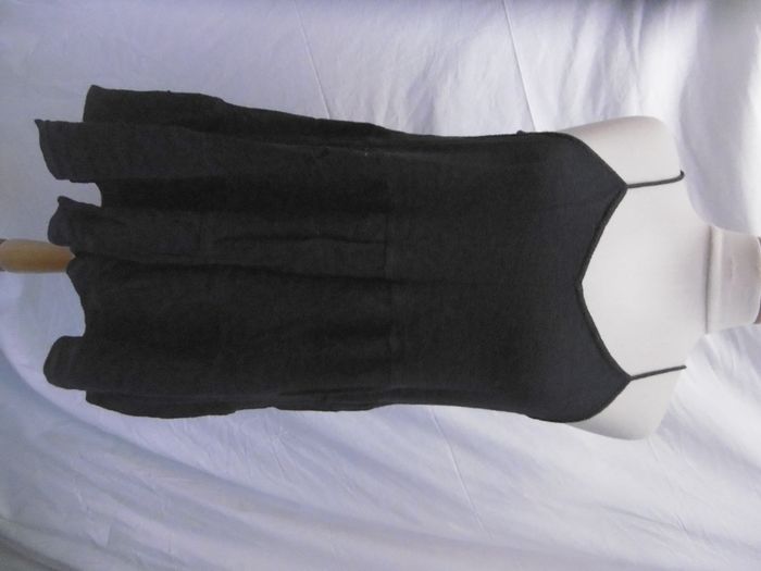 de chez Soeur débardeur de coupe évasée en coton gaufré tres confortable , finition avec volant pour donner de l ampleur couleur noir anthracite , bon état d'occasion