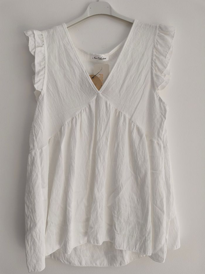 top caroll vichy bleu et blanc à volants - taille 40 - très bon état