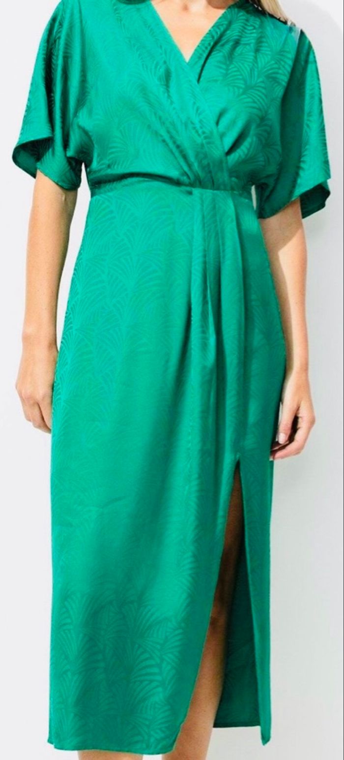Robe Mi longue 100% viscose Forme du col: Cache-cœur Fermeture: Fermeture éclair dans du dos TBE porte 1 fois T44 Poitrine 96 Taille 80 Hanche 103