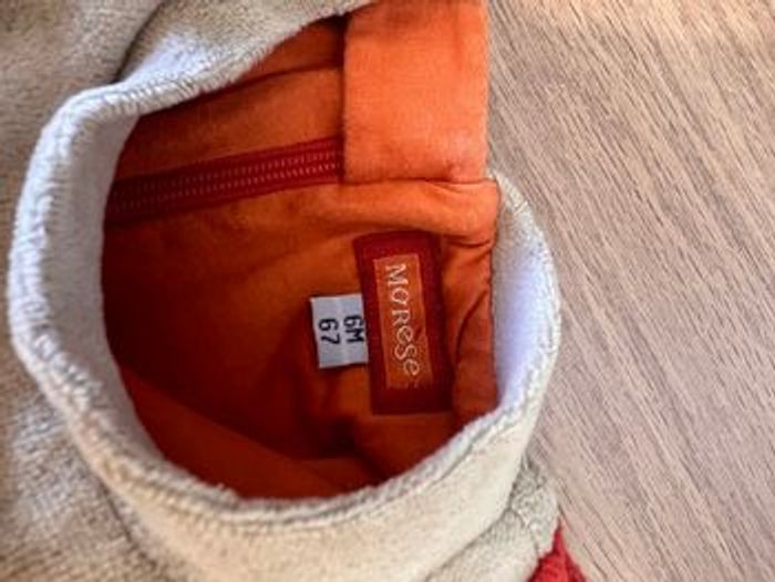 Je vends cette combinaison en velours de la marque Marèse, coloris rouge et beige Taille 6 mois / 67 cm Mixte ou garçon Fermeture éclair dans le dos et boutons pression de chaque côté des deux jambes