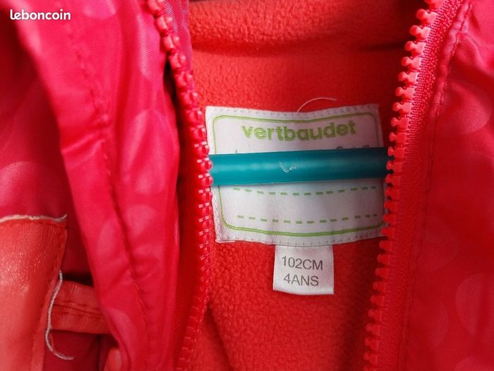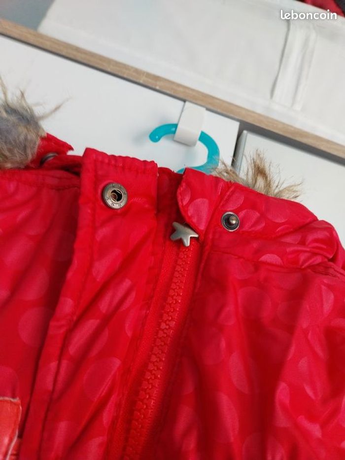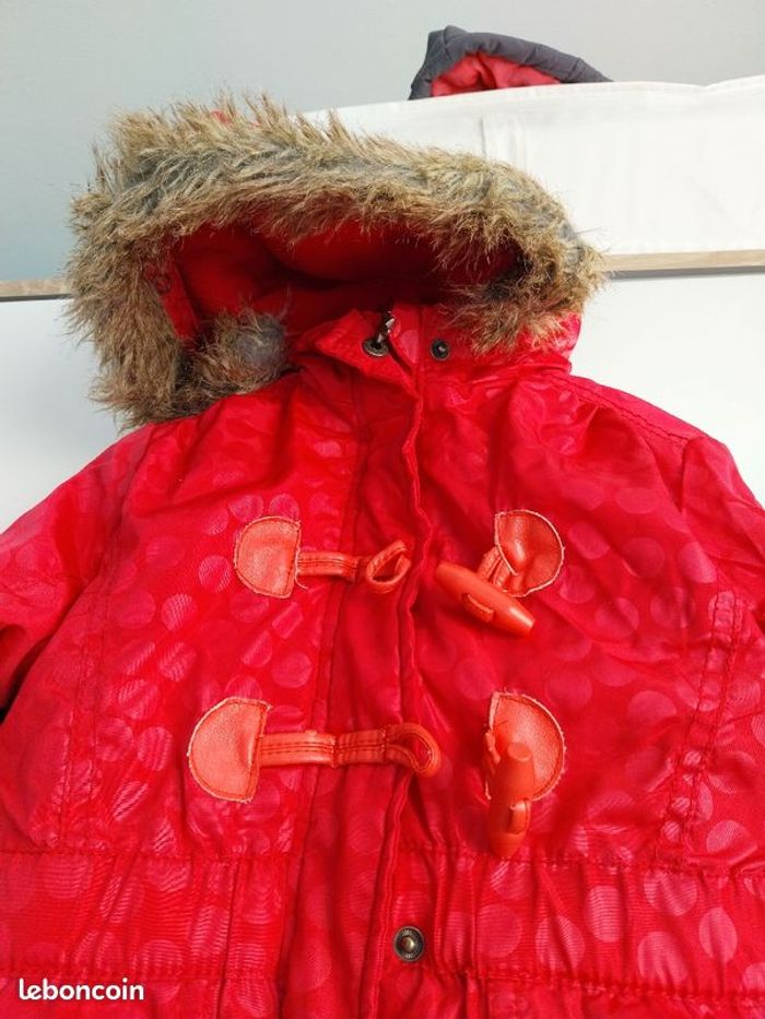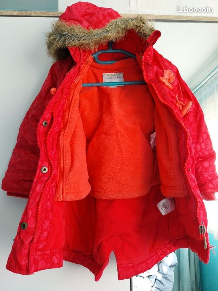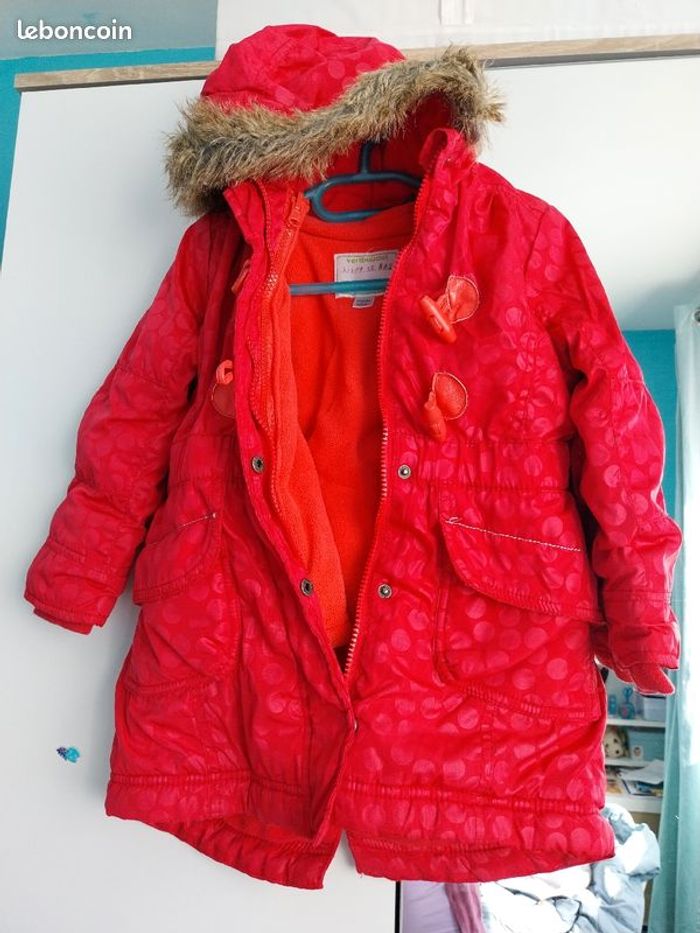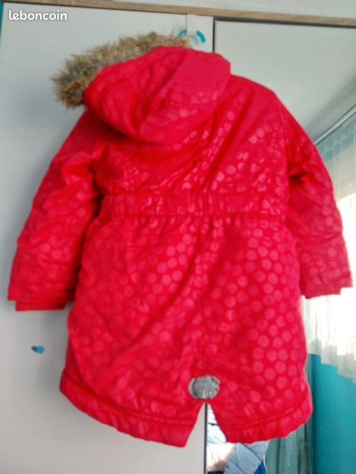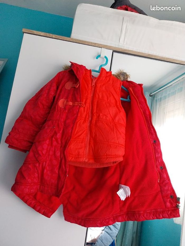 vend 1 jolie parka 3 en 1, fille taille: 102 cm ( 4 ans) - doudoune bien chaude: intérieur en polaire, extérieur imperméable et toucher doux ( idéal hiver) + veste intérieure sans manche, amovible en polaire ( à porter ensemble ou separement) capuche intégrée, bord fausse fourrure amovible par pressions 2 poches devant / fermeture éclair et boutons pression rouge / rose et orange