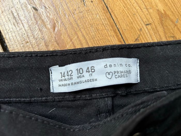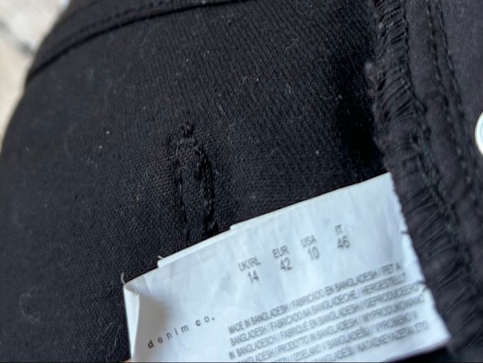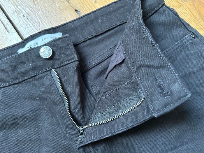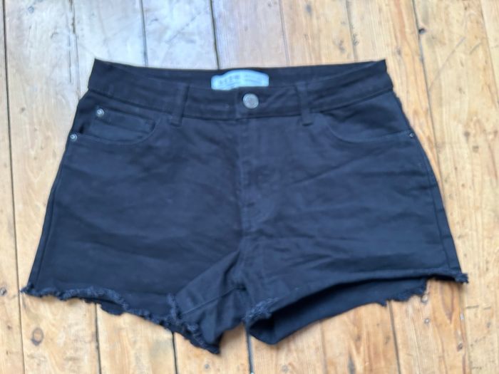 État proche du neuf Short en jeans noir 78% coton 20% coton recyclé 2% elastane Taille européenne 42 Taille italienne 46 Primark La ceinture mesure à plat sans tirer 39,7 cm, va jusqu’à 43 cm en tirant Longueur côté 30,7 cm Longueur milieu devant 25,7 cm