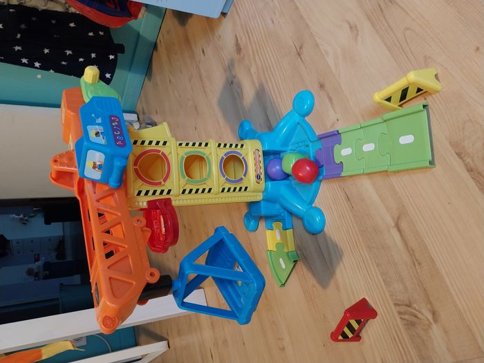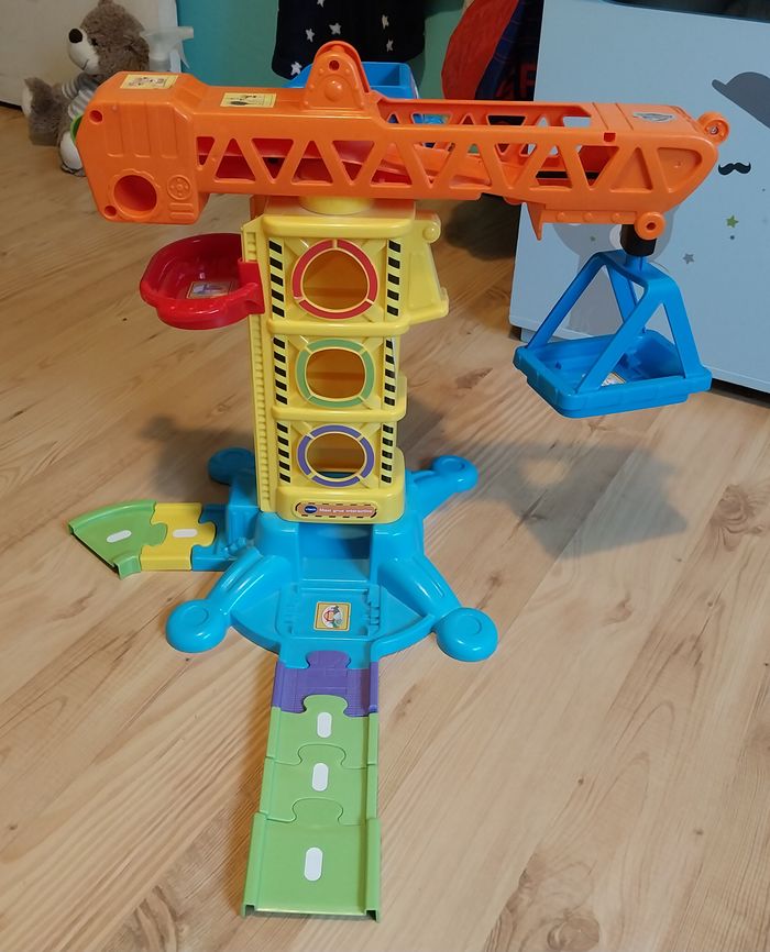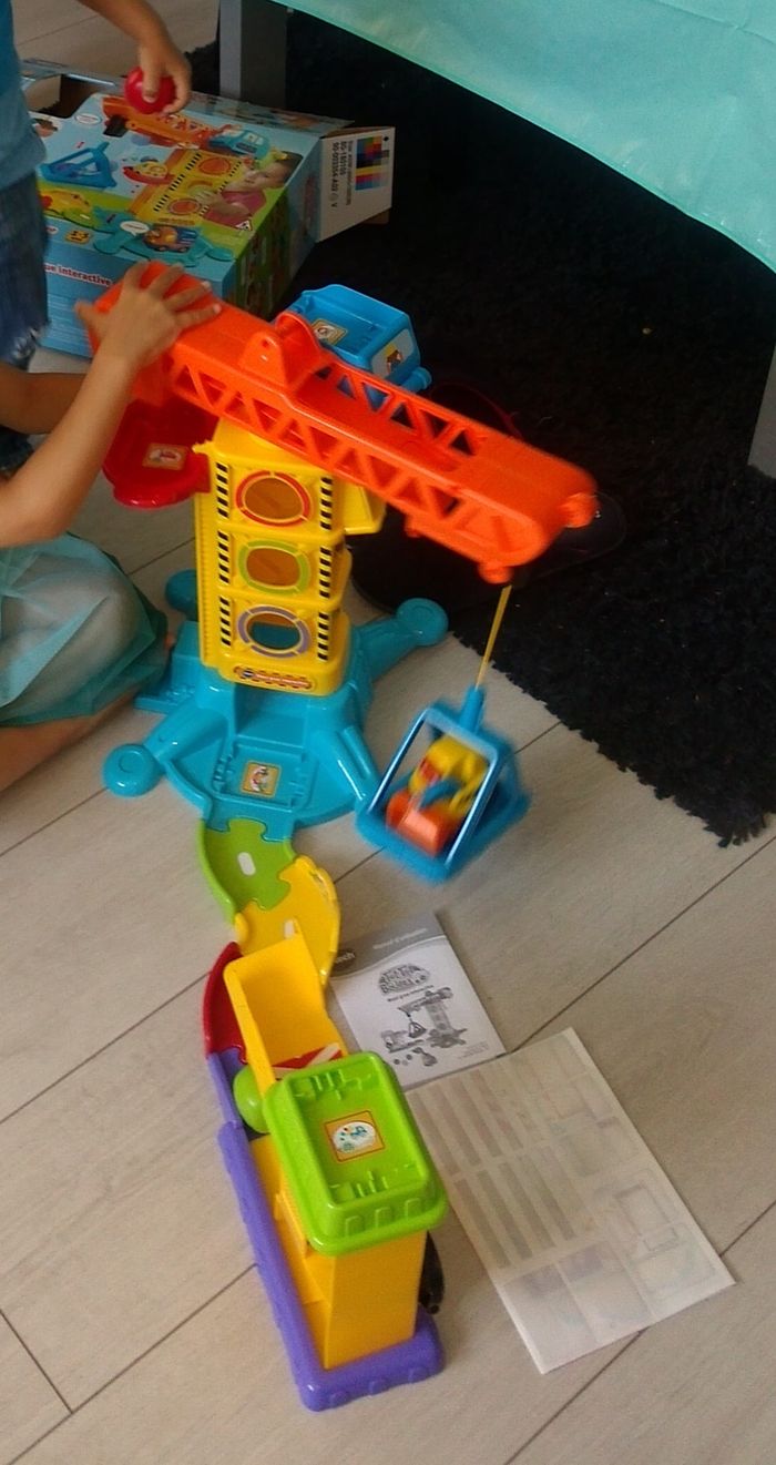 vend 1 Maxi Grue interactive TUT TUT Bolides ( Vtech) excellent état à partir de 1 an premières découvertes bébé & développement motricité 1 grue orientable à 360° + monte-charge + treuil à manivelle + trieur de forme & 3 formes colorées + 1 voiture parlante et lumineuse " Marcel roi de la pelle" bcp d'éléments à manipuler : ascenseur, engrenages, zone de chargement, grande tour avec rampes inclinées pour s’amuser à faire rouler les blocs… 5 zones magiques déclenchent phrases et sons spéciaux 3 chansons et 6 mélodies entraînantes matériaux résistants et lavables