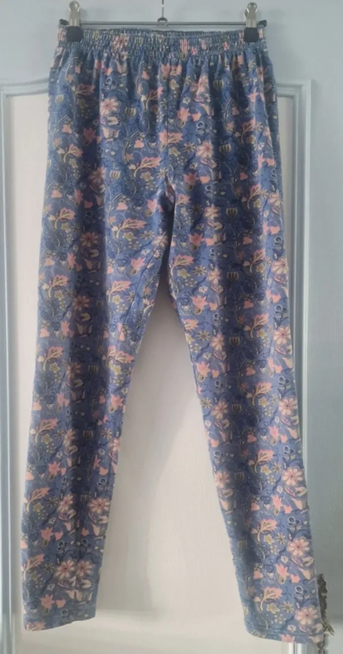 Legging de marque Epicea, taille 1, 92% coton, 8% lycra. Taille élastique, couleur bleu, motif fleuri. Longueur: 88cm