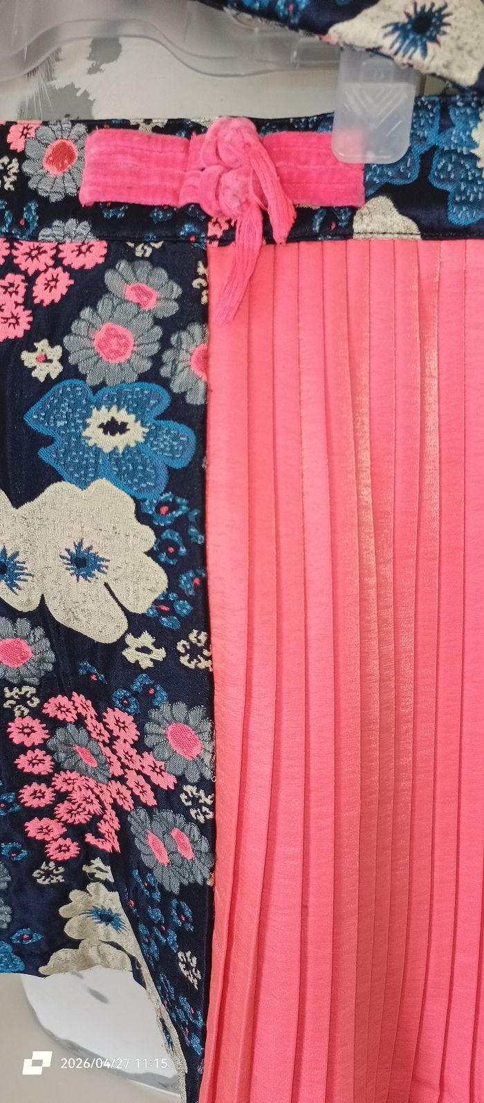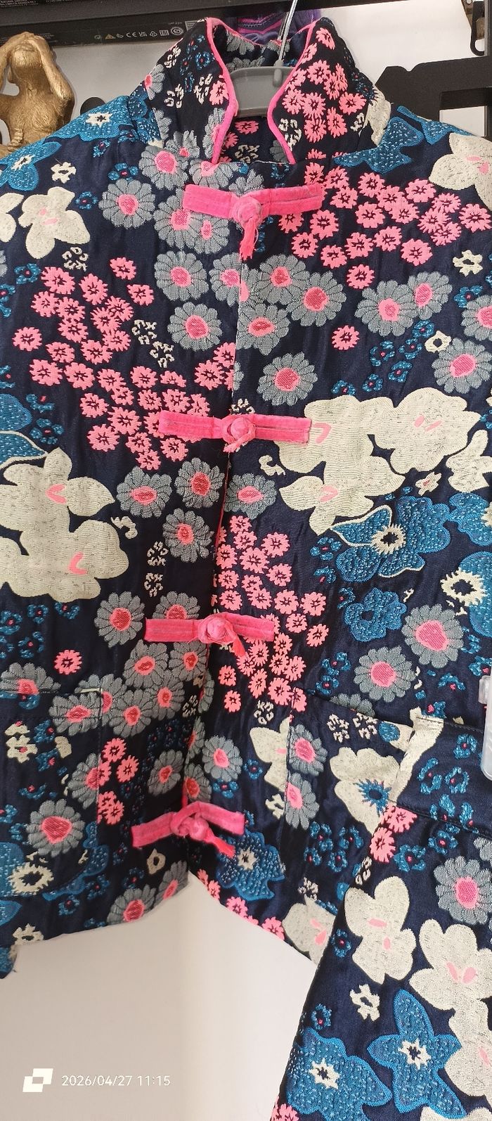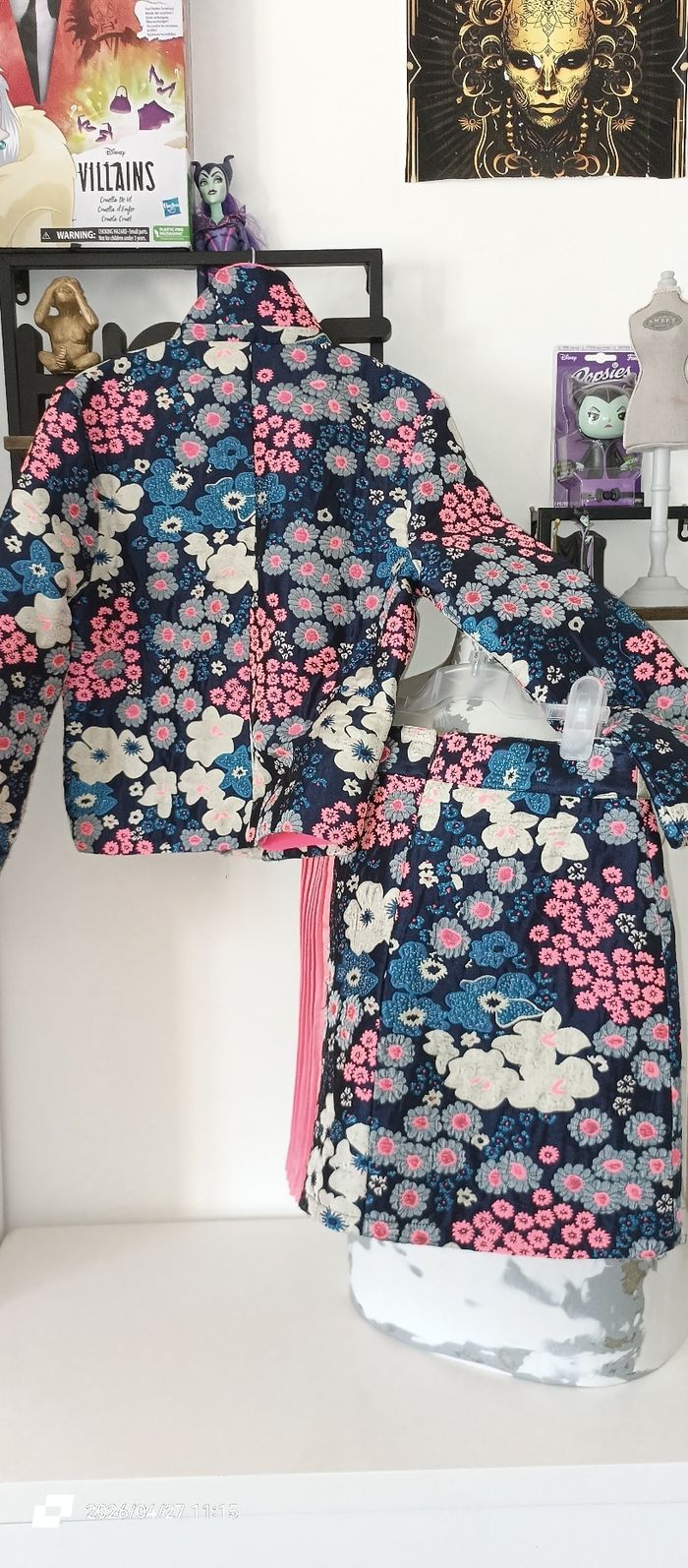 Bonjour Je vend cet ensemble veste col mao et jupe effet plissé. Marine et rose et tons de bleus. Il a quelques bouloches. Je ne sépare pas l ensemble Merci Billieblush 12 ans= 150cm donc 11ans