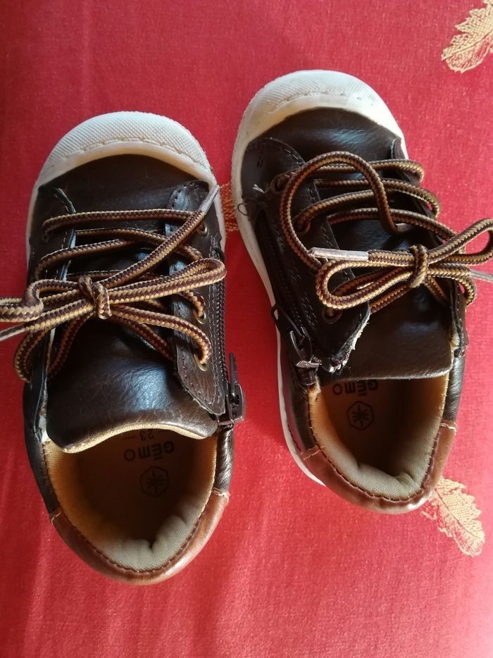 Chaussures extérieur cuir Semelle épaisse Lacets et fermeture éclair Très peu portées : Voir état semelle intérieure Et état extérieur global Marque gemo taille 23 Chaussures assez habillées et jolies au pied !
