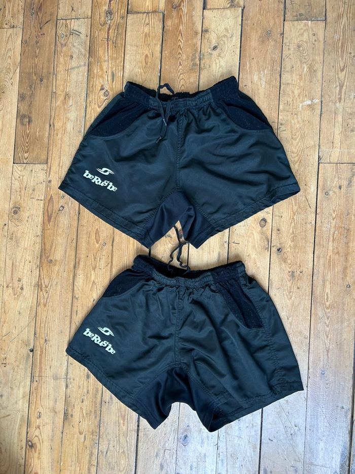 2 shorts de rugby Noir tri matières Taille 12 ans 100% polyester Marque berugbe