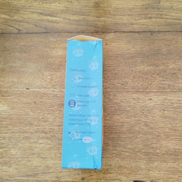 Brosse à dents électrique enfant U forme dinosaure rechargeable 2-6 ans étanche silicone doux. Boite est un peu abimée, mais jamais utilisé.