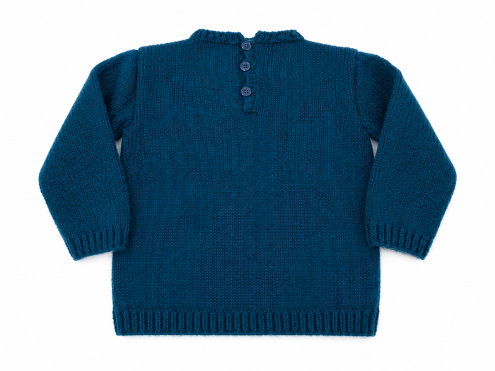 Pull 100% pur laine 4 ans . Tricoté a la main par Mamie Lu. Bouton à l'arrière du cou pour faciliter l'enfilage. Garçon, fille, mixte. #4ans_nanna33680