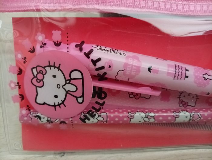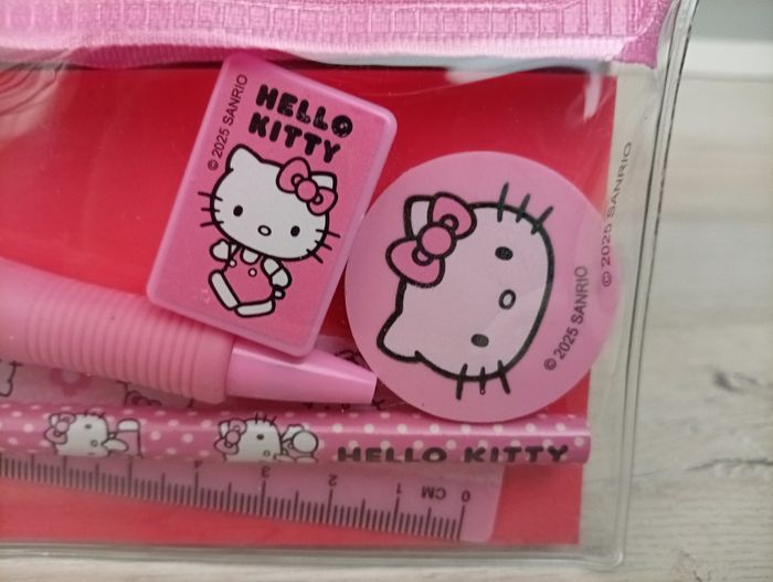 Trousse Hello Kitty contenant - 1 règle - 1 stylo - 1 crayon de papier - 1 gomme - 1 taille crayon Neuf