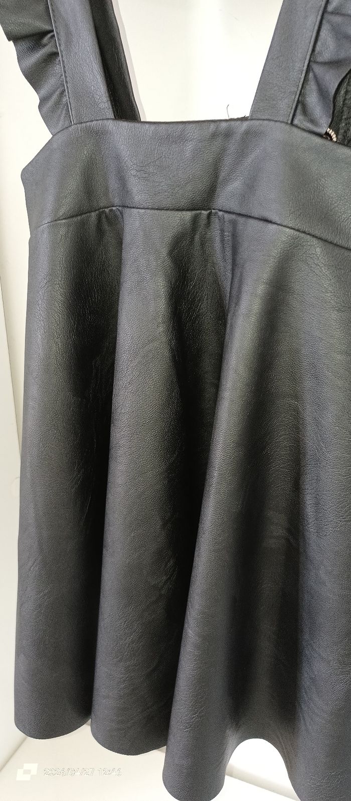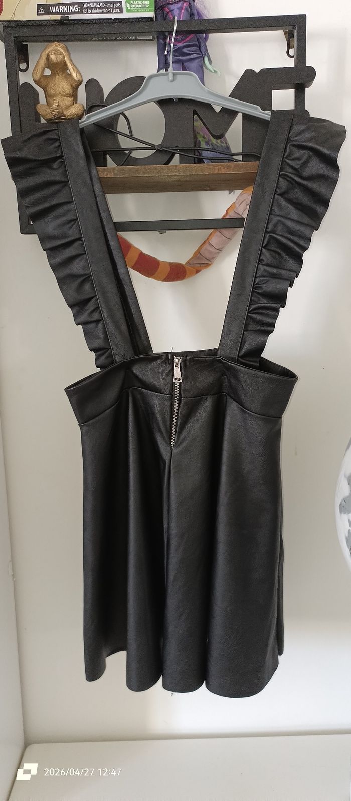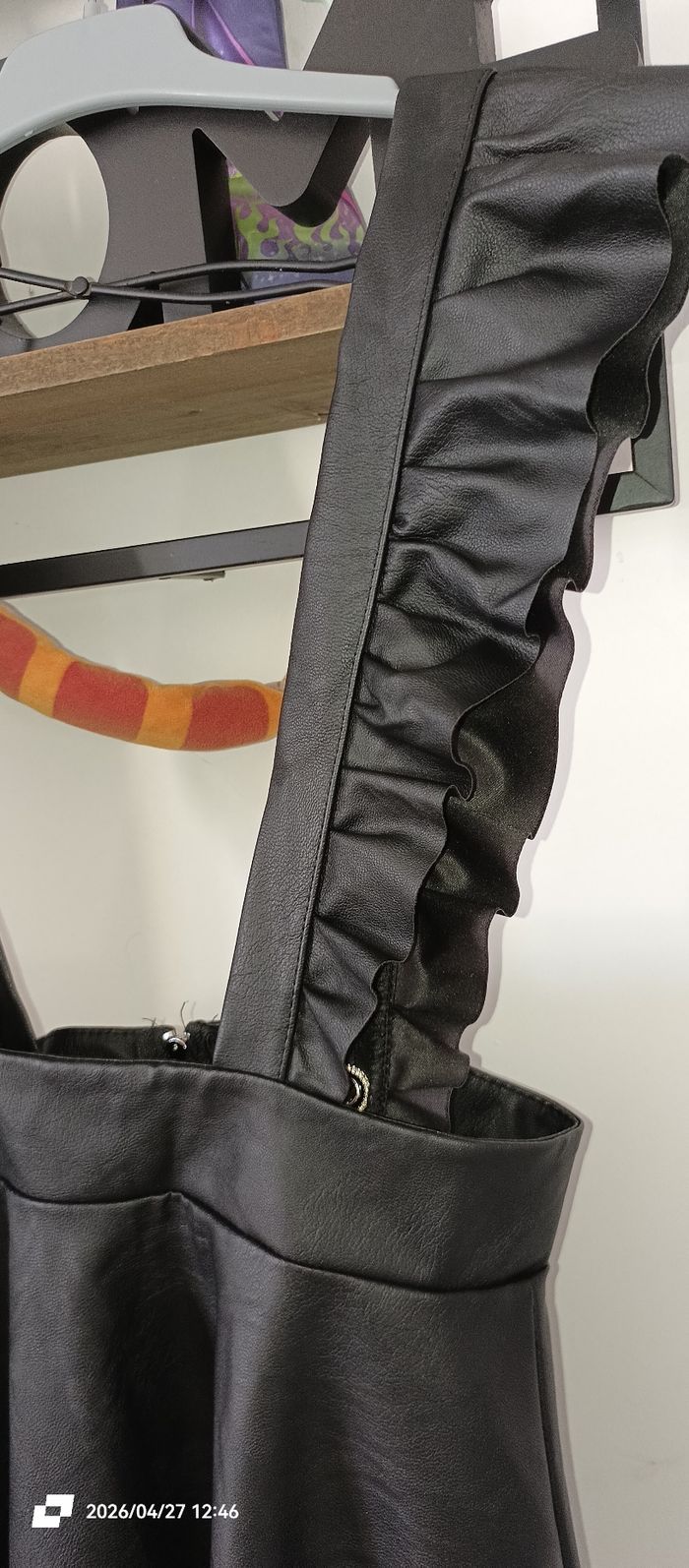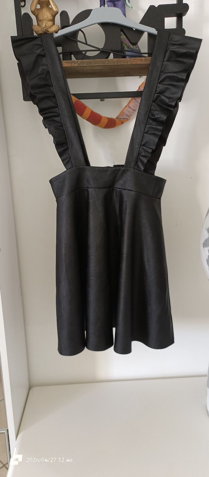 Bonjour Je vend cette jupe a bretelles froufrous Simili cuir. Noire. Merci