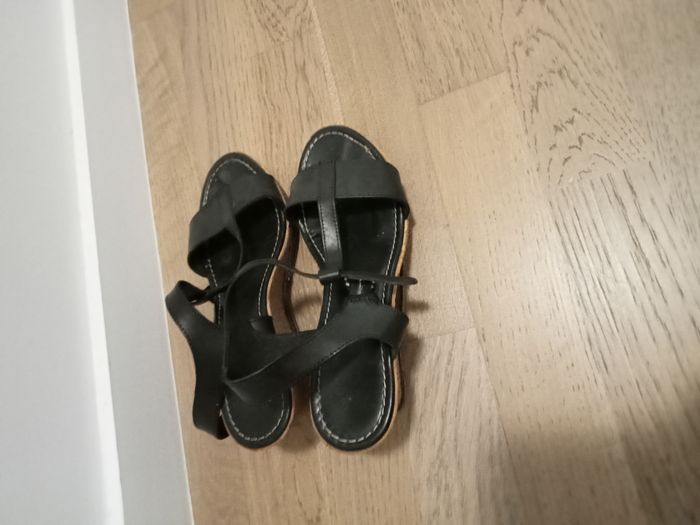 Sandales compensées en cuir noir Eram 37 - photo numéro 1