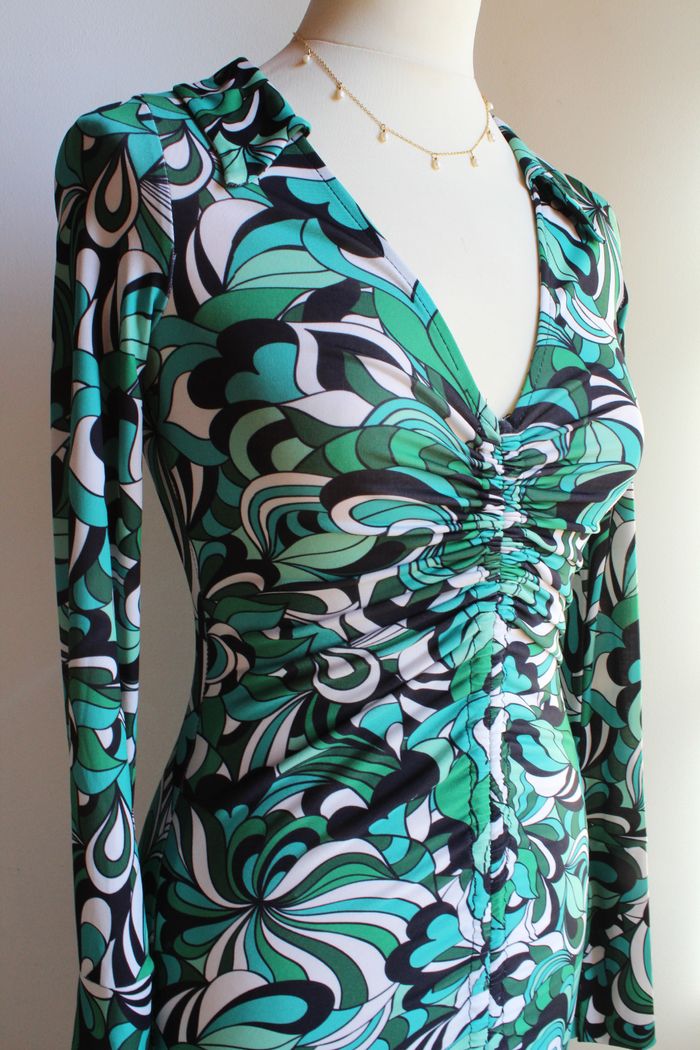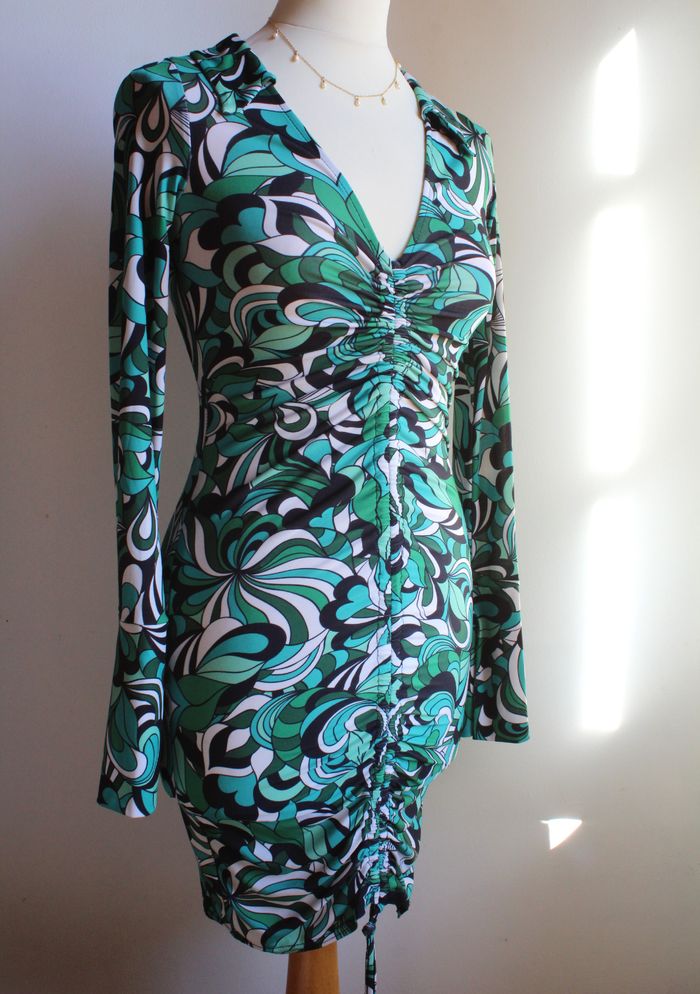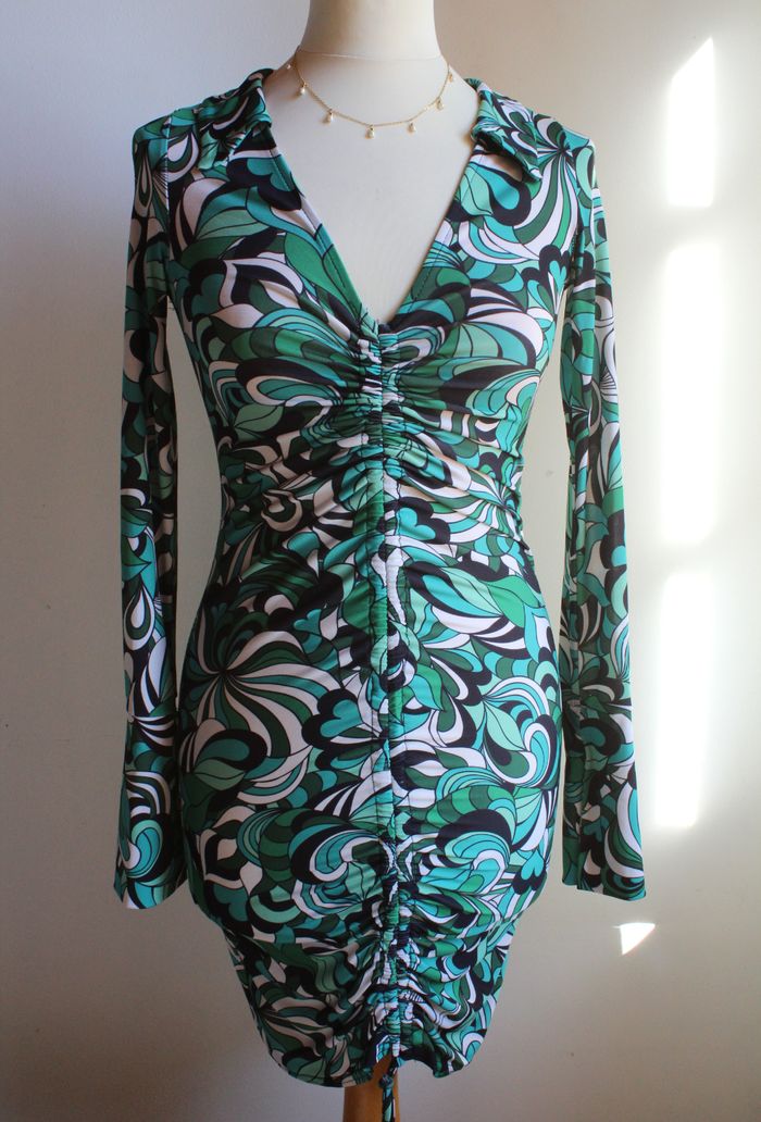 💚 Robe moulante à imprimé rétro – ASOS (1) Cette magnifique robe ASOS à imprimé géométrique vert et noir est la pièce parfaite pour un look audacieux et tendance ! Avec sa coupe près du corps et son effet froncé sur le devant, elle sublime la silhouette tout en restant confortable grâce à son tissu stretch. Ses manches longues et son décolleté en V en font une robe idéale pour une soirée, une sortie ou un événement spécial. ✨ Taille : XS/34 ✨ Matière : 97% polyester, 3% élasthanne ✨ Couleur : Vert, noir et blanc (motif psychédélique rétro) ✨ Détails : Manches longues, décolleté en V, fronces réglables à l’avant, tissu extensible ✨ En excellent état ✨ Envoi rapide et soigné 🌿 Pour toutes questions, n'hésitez pas à m'envoyer un message !