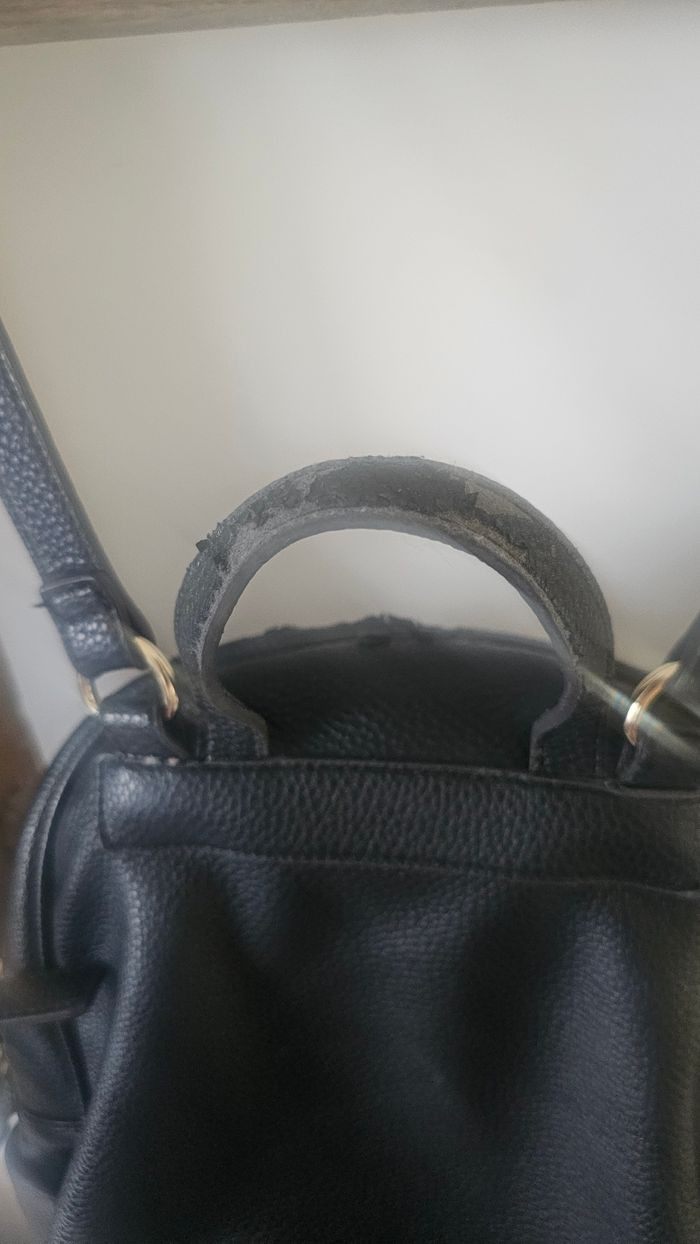 Je vends ce sac à dos Guess en simili cuir noir, un accessoire pratique et élégant pour le quotidien. - Type de produit : Sac à dos - Univers : Femme - Marque : Guess - Couleur : Noir - Matière : Simili cuir - Fonctionnalités : Fermeture zippée indépendante devant et une à l'intérieur, Bretelles réglables - Aménagement interne : Poches zippées et poches portefeuille État satisfaisant cf photos il est abîmé car beaucoup porté Dimensions : 34cm de haut A plat : 36 cm de large (de couture à courure 29cm à plat) Profondeur prise sur le dessus : 13cm Aucune photo portée N'hésitez pas à me contacter pour plus d'informations ou de photos supplémentaires.