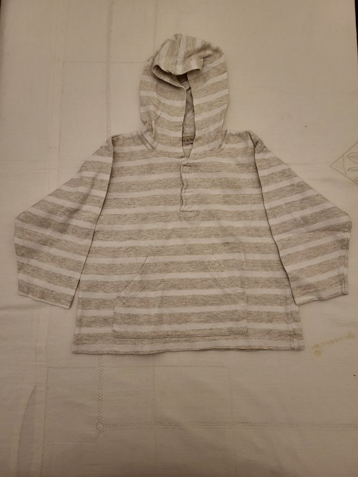 1 tee-shirt manche longue à capuche garçon 3 ans blanc et beige rayer