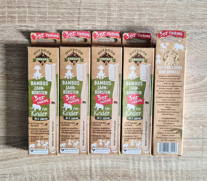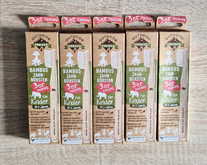 Lot de 5 x 3 Brosses à dents enfant bambou éco - Neuf